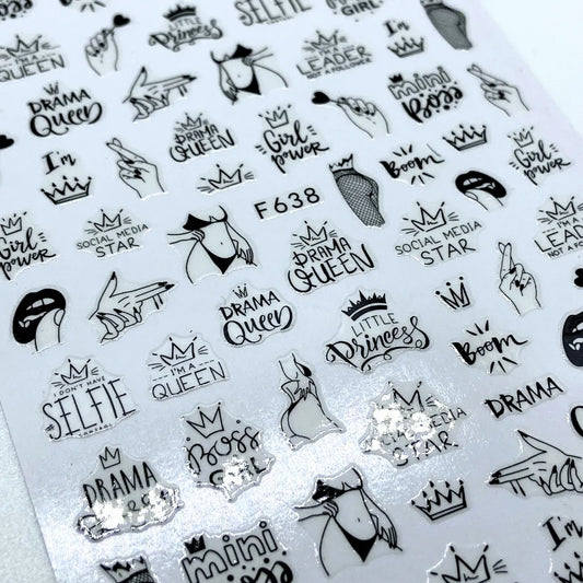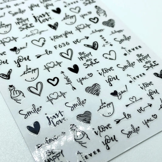 Stickers Corazones y letras negras F636