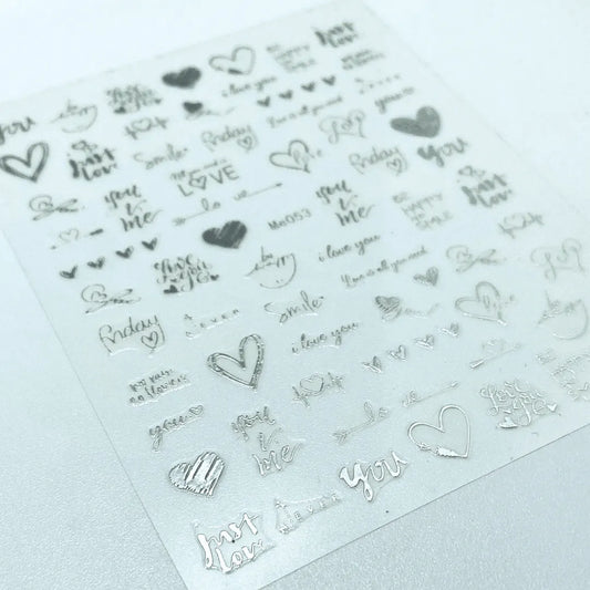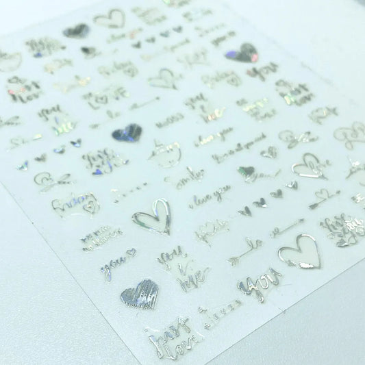 Stickers Corazones y letras plateado Me053