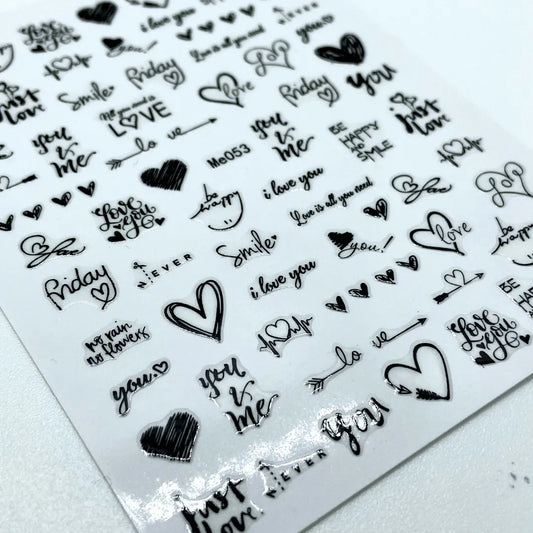 Stickers Corazones y letras negras Me053