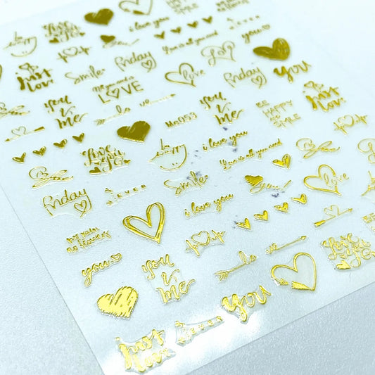 Stickers Corazones y letras dorado Me053